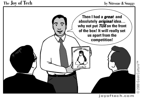 | Welcome to the Joy of Tech... our new daily comic, illustrated by Nitrozac and written by Nitrozac and Snaggy. It's a little bit simpler in style than After Y2K, and will be more topical, and we hope you'll enjoy it! |