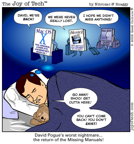 - Not having OS X, since I can't see those David Pogue icons in their full glorious size.