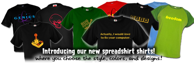 HomeGeek Culture... Geek Love, Geek Files, Mind Numbing Magazine, all kinds of geeky stuff!The Webstore! Get some cool stuff, and support your fave comic creators!e-Cards!The ForumsThe Joy of Tech! ...your quick fix of comic fun!After Y2K!webcam!