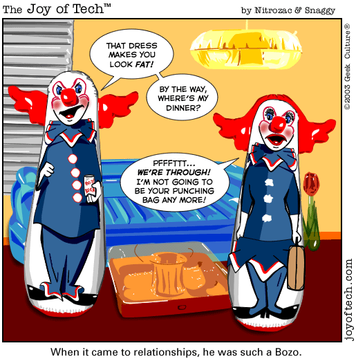 - Let's face it, Bozo is always getting into abusive relationships.