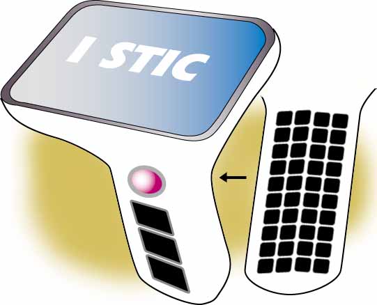 My I MAC has been renamed the I STIC. It is operated by holding it as you would a clarinet, with the thumbs operating the cursor control and special keys like the option key, control key or space key. It could operate from an Airport or from a power tail.