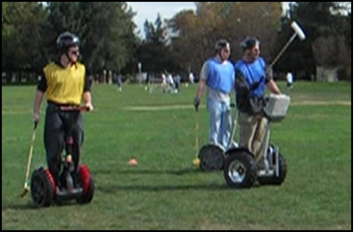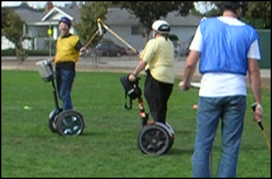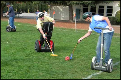 Our gracious host Steve Wozniak took us to the Sunnyvale park where The Bay Area Segway Enthusiasts Group holds matches twice a month. As their website notes "Segway Polo is a lot like regular polo, but with nothing to shovel." Instead of horses, combatants ride their trusty Segways, as two teams fight it out to see who can hit a ball through the other's goal the most times.
