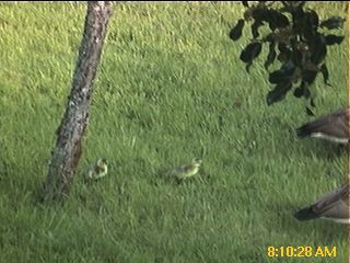 | The Canada Geese that were nesting in the tree had their family hatch! In a very interesting event, a number of geese came over to check out the new chicks. At first we thought it was an attack, there was quite a commotion and lots of honking. It seemed like at least two of the geese were protecting the mother, standing as guards right up there on the nest, while the dad was down below keeping others away. |