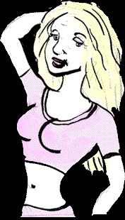 | One of the stand-in girls was the kind of girl you love to hate. For some dumb reason she couldn't stop doing the dumb-blonde routine. The authenticity of her boobs were often a topic of conversation along with how she'd trip up the whole cast during the show when she had to go on. She acted like she was in a porno movie ALL the time! She gave women a bad name, a real bad name. All the guys would say, "Once you get to know her, she's really intelligent." Give me a break! |